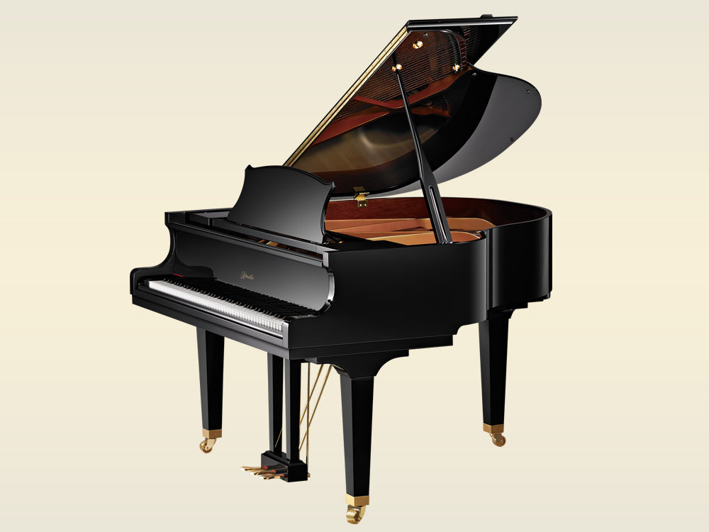 Features: Hard maple action produced by advanced CNC digital machinery ~ Extruded aluminum rail ~ Domestic walnut laminated beams ~ Solid maple capped, vertically laminated bridge bridges ~ Brass hardware ~ Butcher-block spruce key bed ~ Japanese felt hammers ~ Premium Siberian spruce keys ~ Practice middle pedal ~ 19 maple cross ply laminated pinblock ~ Sand-cast plate, CNC processed ~ All spruce laminated soundboard ~ German Röslau strings ~ Steel, cut thread, nickel plated tuning pins