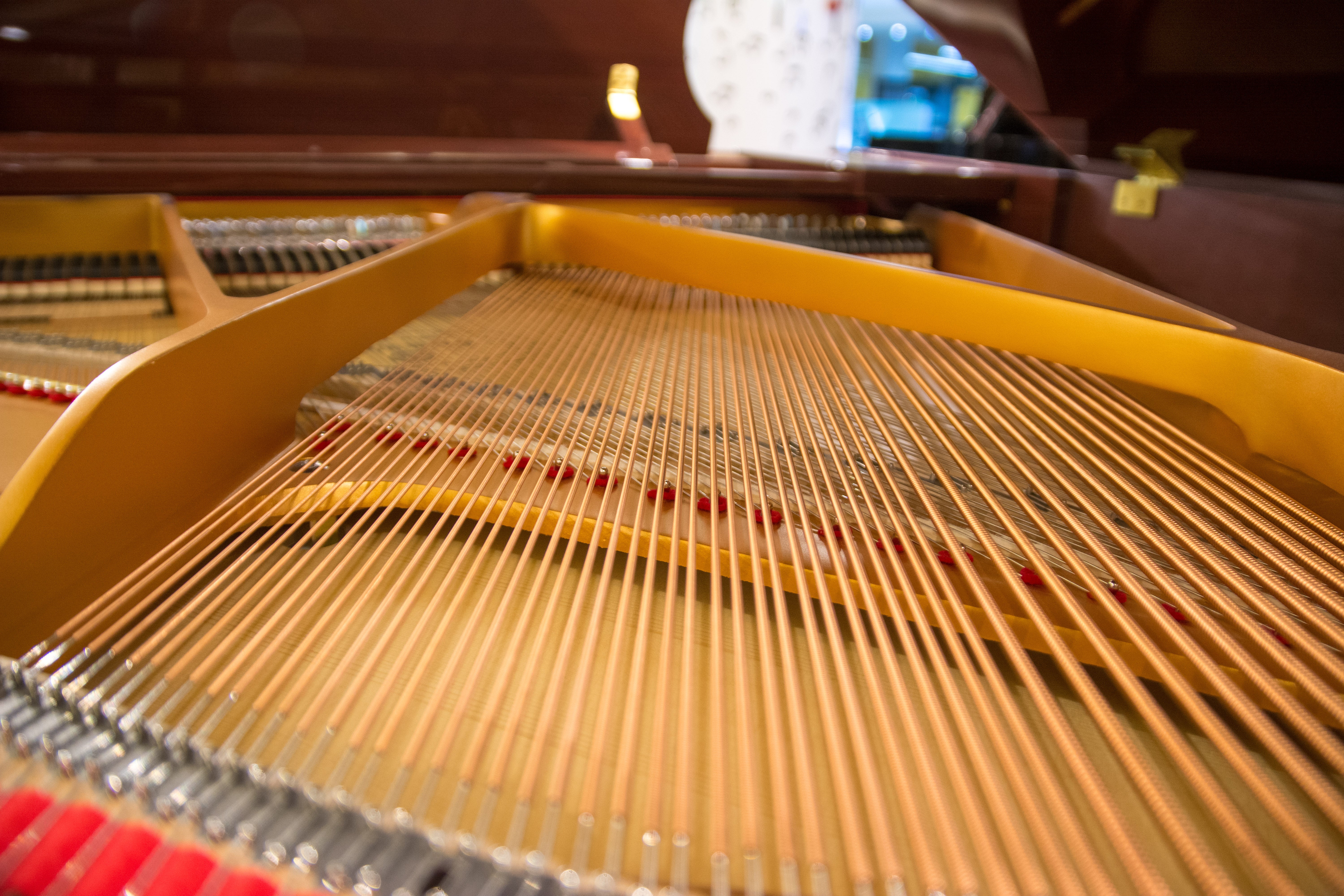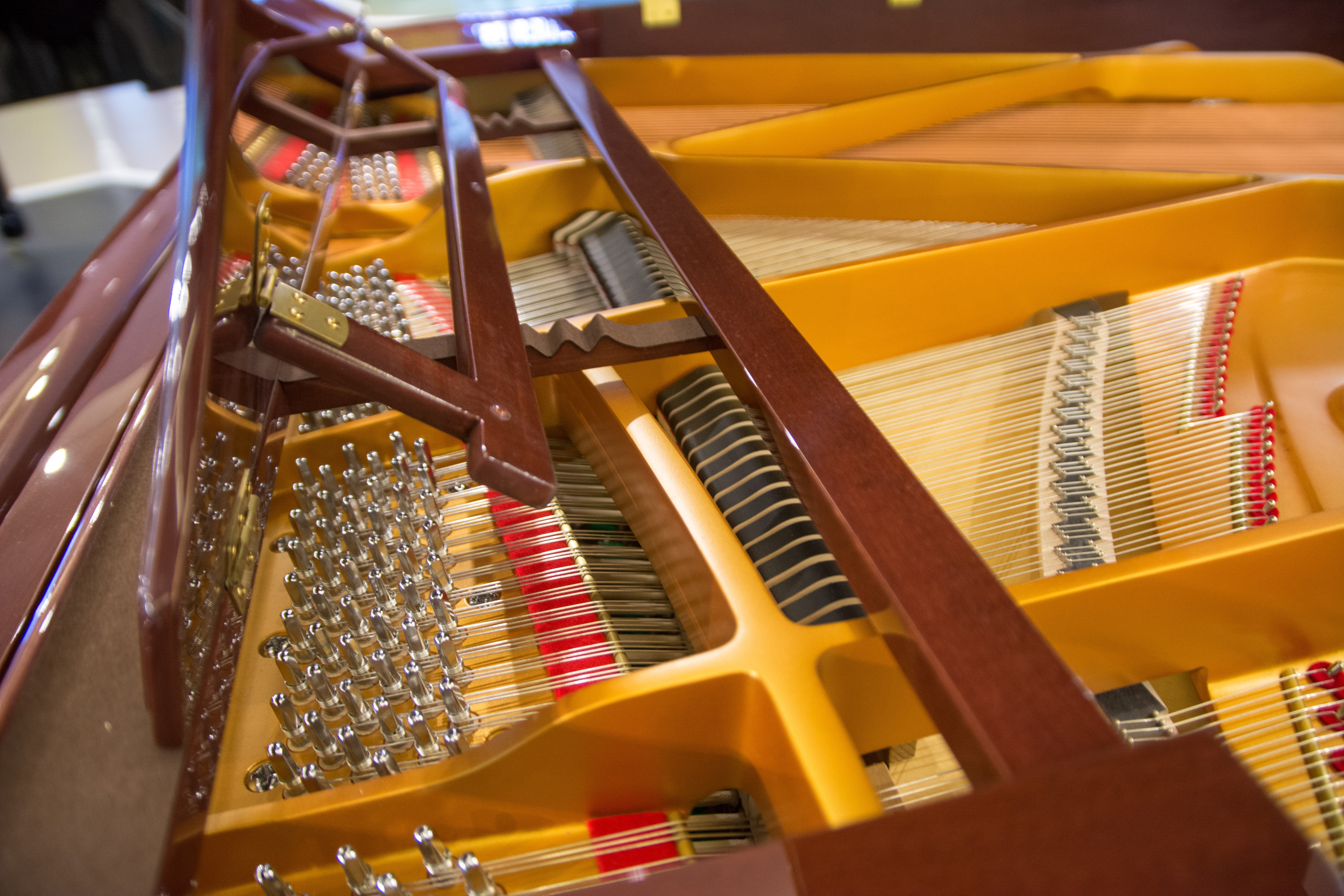 Features: Hard maple action produced by advanced CNC digital machinery ~ Extruded aluminum rail ~ Domestic walnut laminated beams ~ Solid maple capped, vertically laminated bridge bridges ~ Brass hardware ~ Butcher-block spruce key bed ~ Japanese felt hammers ~ Premium Siberian spruce keys ~ Practice middle pedal ~ 19 maple cross ply laminated pinblock ~ Sand-cast plate, CNC processed ~ All spruce laminated soundboard ~ German Röslau strings ~ Steel, cut thread, nickel plated tuning pins